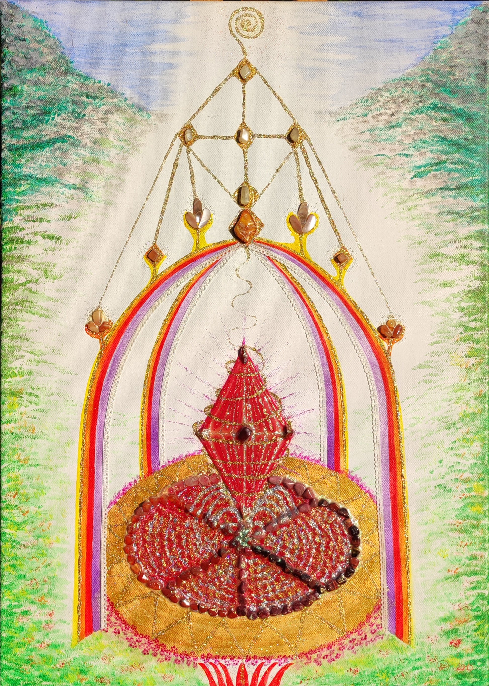 Chrám Matky Zeme je vizuálnym vyjadrením pradávneho archetypu Zeme ako živej bytosti. Nezobrazuje krajinu, ale vnútorný chrám, kde sa stretáva príroda, človek a duch.